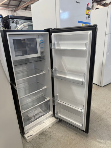 Meet the HRBF179B—an eye-catching black fridge with a sleek curved design perfect for both your kitchen and entertainment spaces. With an upright profile and generous 179 L capacity, it offers ample storage without taking up too much precious floor space .